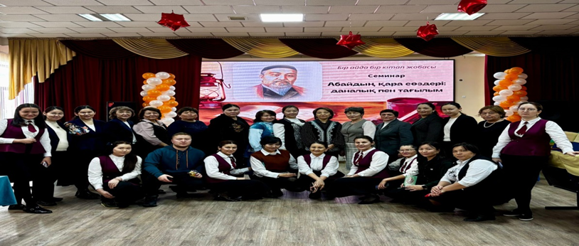 С.Көпбаев атындағы №186 жалпы білім беретін мектебінде «Біртұтас тәрбие» бағдарламасын іске асыру мақсатында 2025 жылдың 31 қаңтар күні мектеп директоры Г.Б. Раеваның бастамасымен және ағылшын тілі пәні бірлестігінің ұйымдастыруымен «Бір айда – бір кітап» жобасы аясында Абай Құнанбаевтың «Қара сөздері – даналық пен тағылым» атты тақырыпта мектепішілік семинар өткізілді.