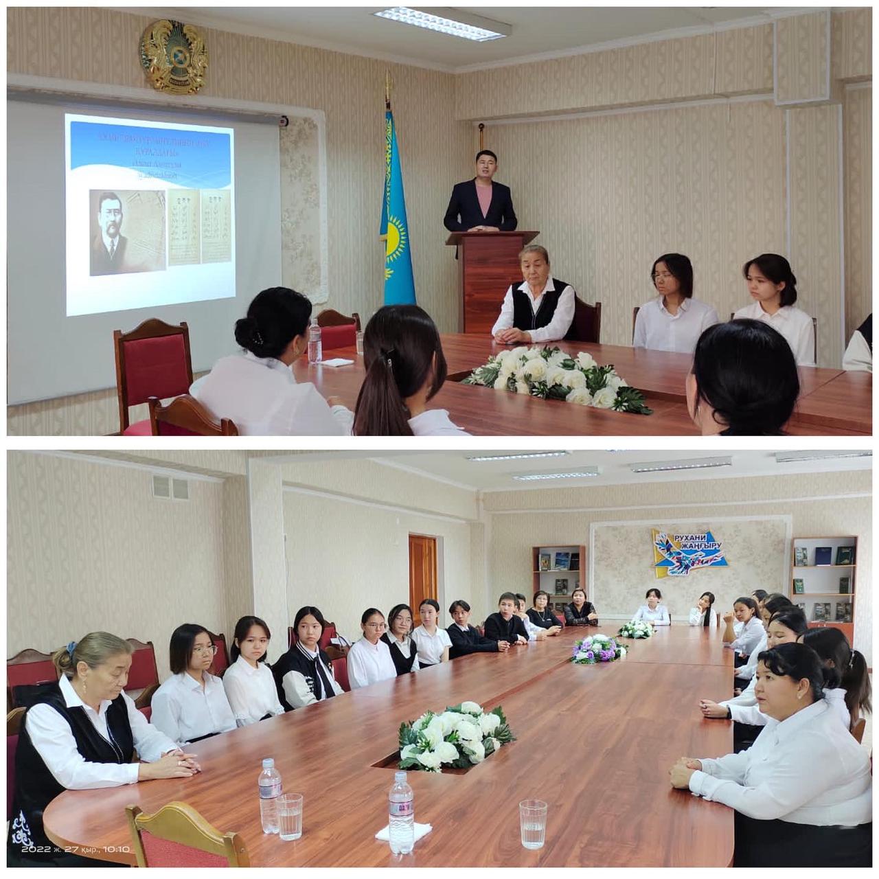 Ахмет Байтұрсынұлының 150 жылдығына орай 9-10 сынып оқушыларымен «Ұлттың ұлы ұстазы» атты тұлғатануға арналған кездесу кеші