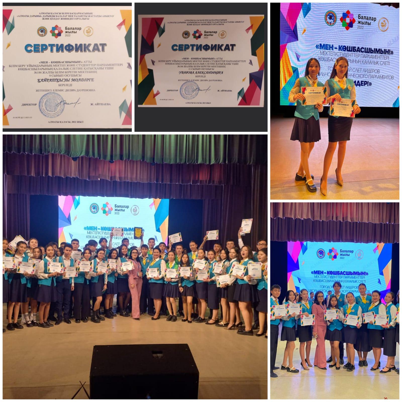 көшбасшымын!» атты бiлiм беру ұйымдарының мектеп және студенттер парламенттерi көшбасшыларының калалық слеті өткізілді. Жалпықалалық слетке мектебіміздің Өзiн-өзi басқару ұйымының президентi Уварова Александрия мен білім және ғылым министрі Қайратқызы Мөлдір қатысты. Өзін өзі басқару ұйымы "Оқушылардың өзін-өзі басқару формалары. Өзін-өзі басқаруды дамытуға қолайлы жағдайлар" тақырыбында баяндама оқып, өздерiнiң табысты тәжiрибе әлеуметтік жобасын қорғады. Нәтижесінде, ұйым мүшелері сертификаттармен марапатталды.