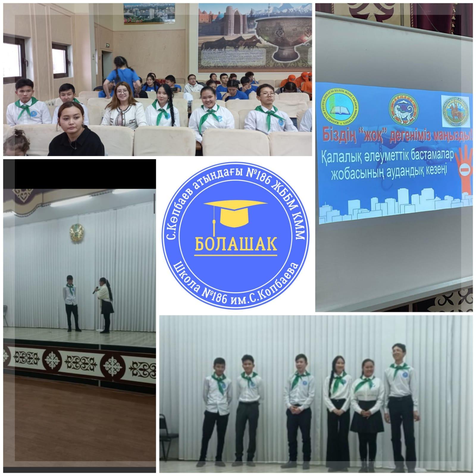 2022 жылдың 29 қарашасы күнi №187 жалпы бiлiм беретiн мектепте "Біздің «ЖОК!» дегенiмiздiң маңызы бар!" қалалық әлеуметтік бастамалар жобасы конкурсының аудандық кезеңi өткiзiлдi. Конкурста Наурызбай аудандық білім бөлiмiнiң басшысы Кусаинова Салтанат Амангельдиевна, Наурызбай аудандық бiлiм бөлiмiнiң бас маманы Зеитова Маншук Сапиновна, Алматы қалалық «Ұстаз» жергiлiктi кәсіподағы қоғамдық бірлестігі Наурызбай аудандық филиалының төрағасы Сейтаскаров Мурат Айнашевич және Наурызбай аудандық бiлiм бөлiмiнiң әдiскері Бралина Назия Ғалымқызы әділ қазылық етті. Аудандық кезеңге барлығы 9 команда қатысты.