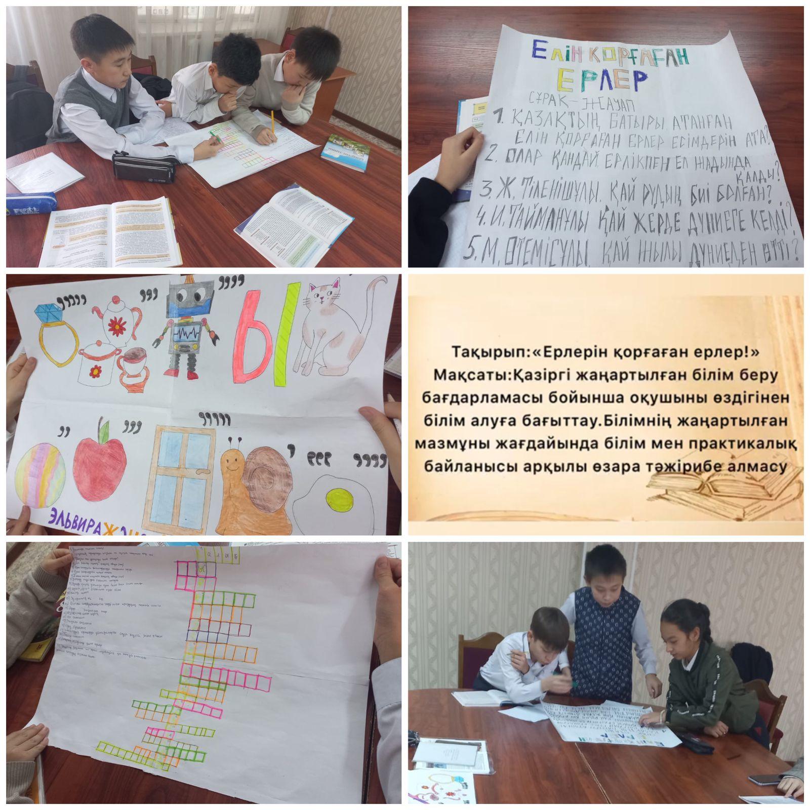 Цель: Знакомить учащихся с героическими подвигами великих людей, подавать пример, развивать мыслительное поле учащихся, углубляясь в героизм героев. Научить любить и защищать Родину, страну, землю, быть смелым.