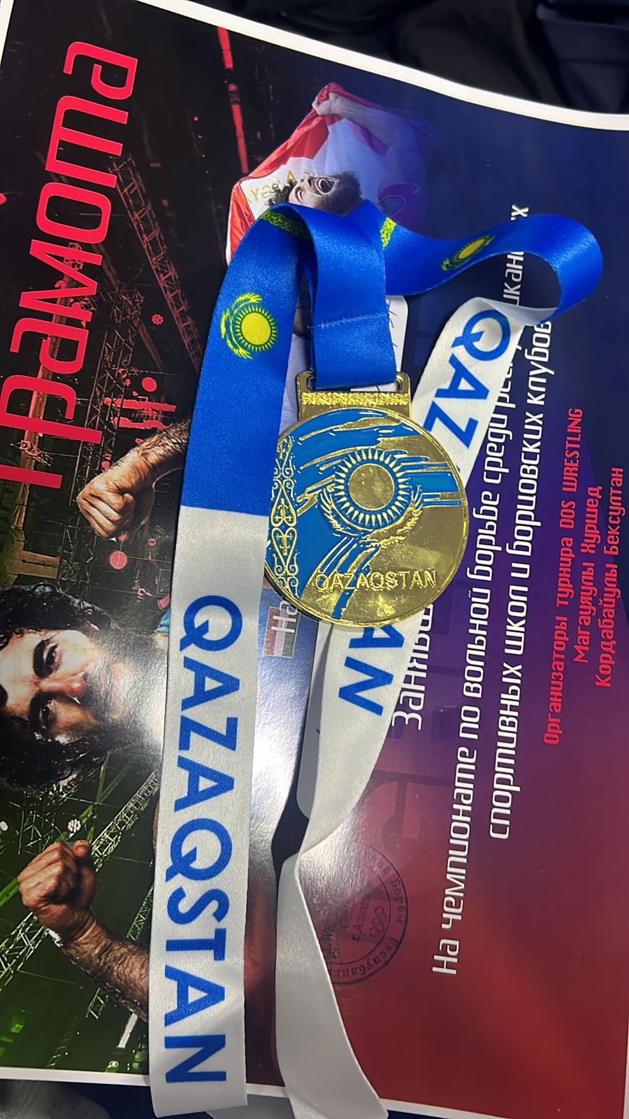 Ученик 8" Г "класса КГУ ОШ 186 им.С. Копбаева Хаперский Дмитрий занял 1 место на чемпионате по вольной борьбе среди республиканских спортивных школ и борцовских клубов.
