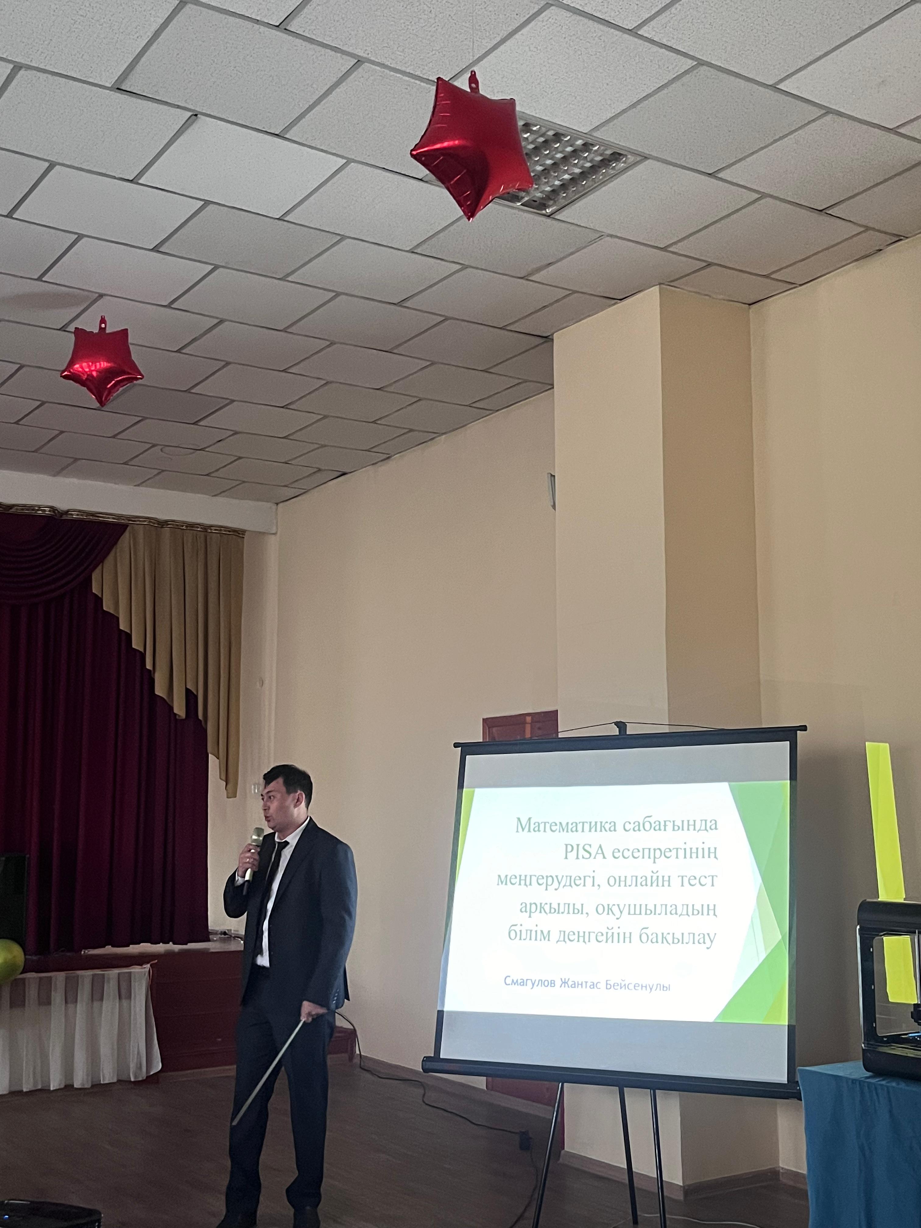 Семинар барысында биология, химия, география, математика, физика, информатика пәні мұғалімдері PISA форматындағы тапсырмаларды әр түрлі қосымшалар арқылы шешуде өз іс-тәжірибелерімен бөлісті.