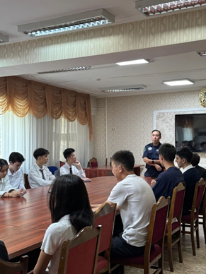 Аталған іс-шараға Наурызбай аудандық полиция басқармасының ювеналды полиция бөлімінің учаскелік инспекторы, полиция лейтенанты Ауелбеков Айдын Сабитұлы оқушылармен кездесу өткізді.