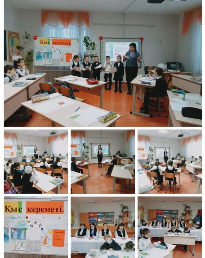 В рамках декады по художественному труду "Мәңгілік елдің - болашағымыз" в общеобразовательной школе №186 имени С. Копбаева учителя 1 класса провели конкурсный урок на тему "Қыс кереметі".
