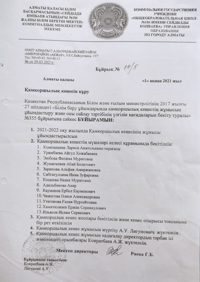 КГУ «Общеобразовательная школа №186 им.С.Копбаева»Управления образования г.Алматы