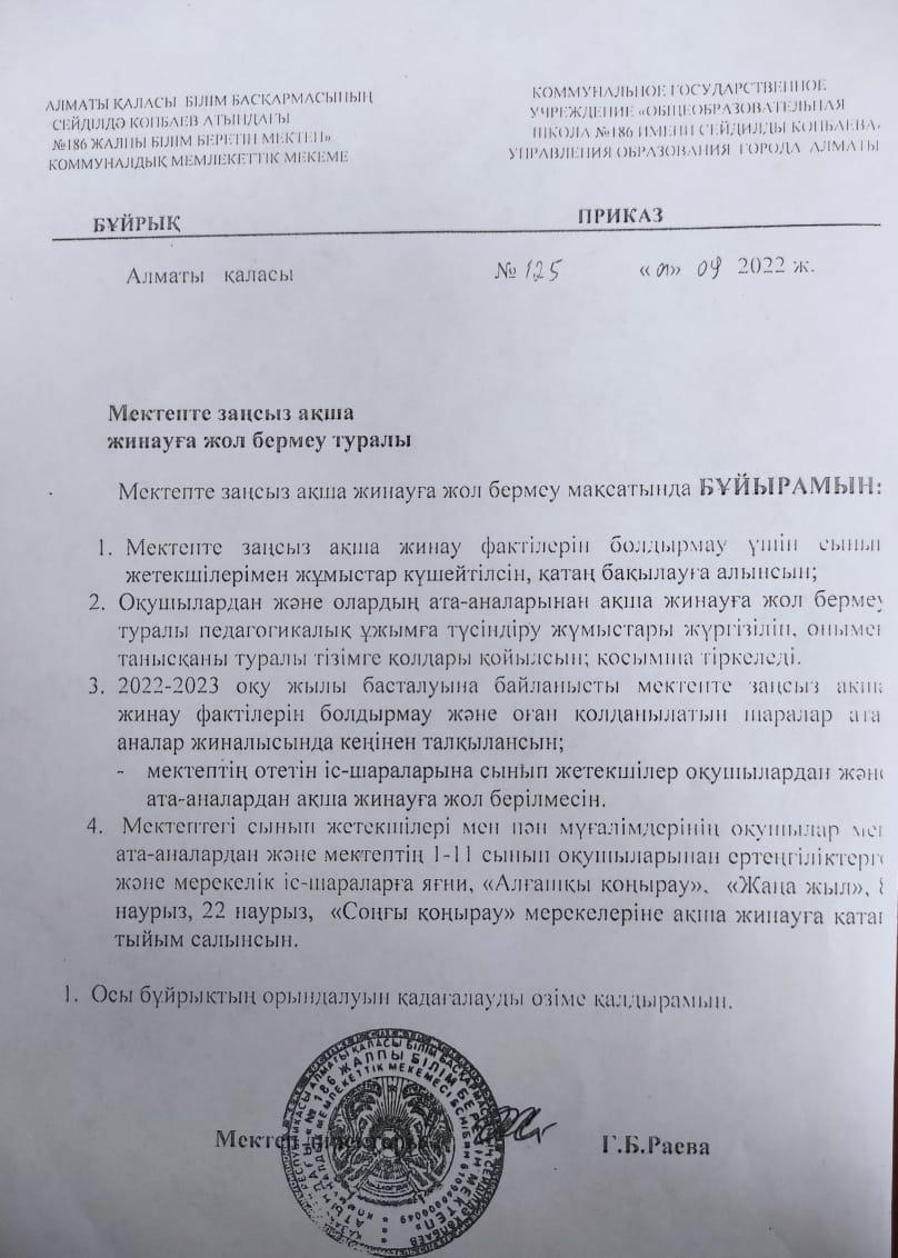 01 сентябрь 2022 0 1 2 3 4 5 Мектепте заңсыз ақша жинауға жол бермеу туралы Осы беттің QR-коды:QR-код этой страницы: