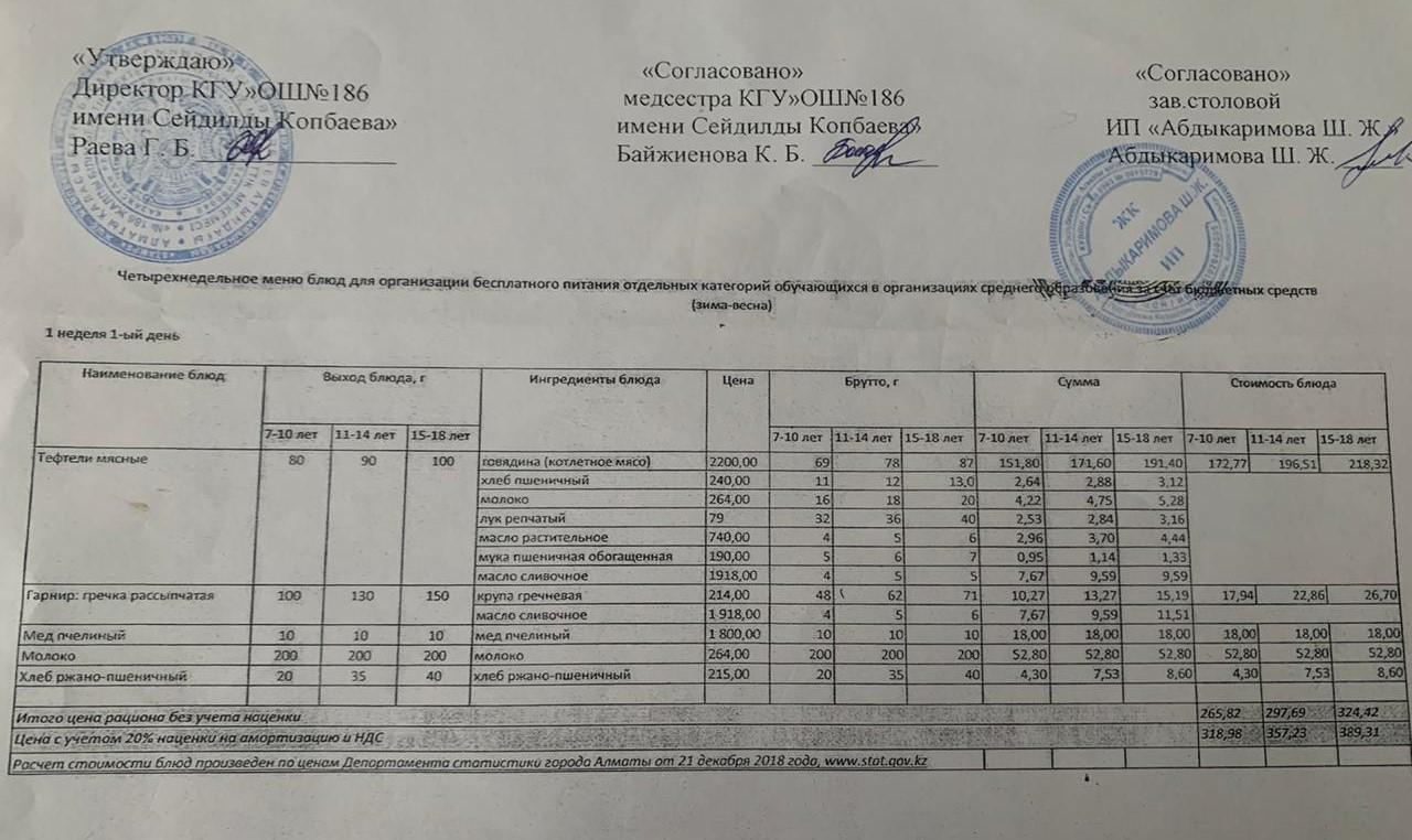 Тағамдар мәзірі