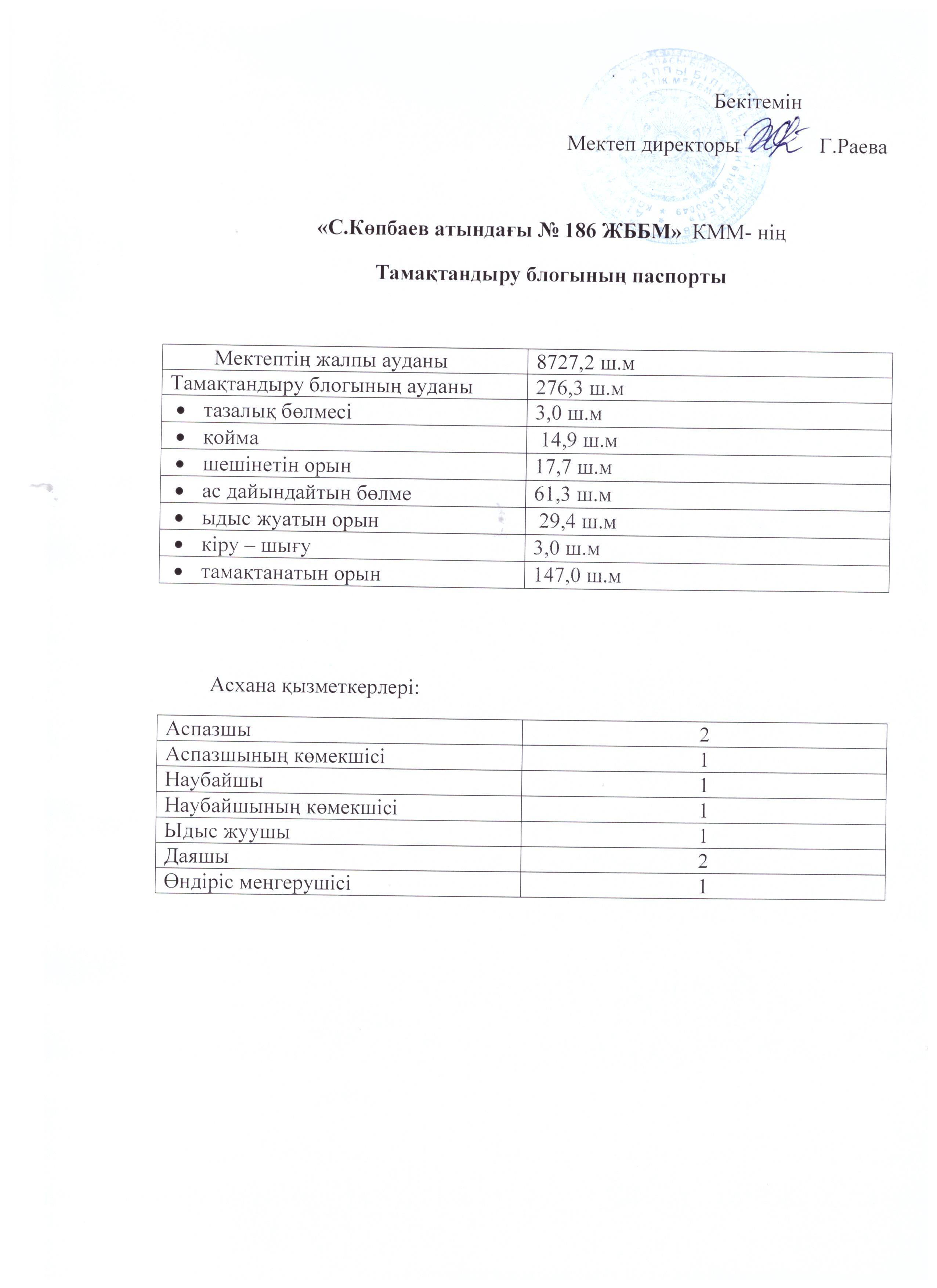 » Тамақтану блогының паспорты