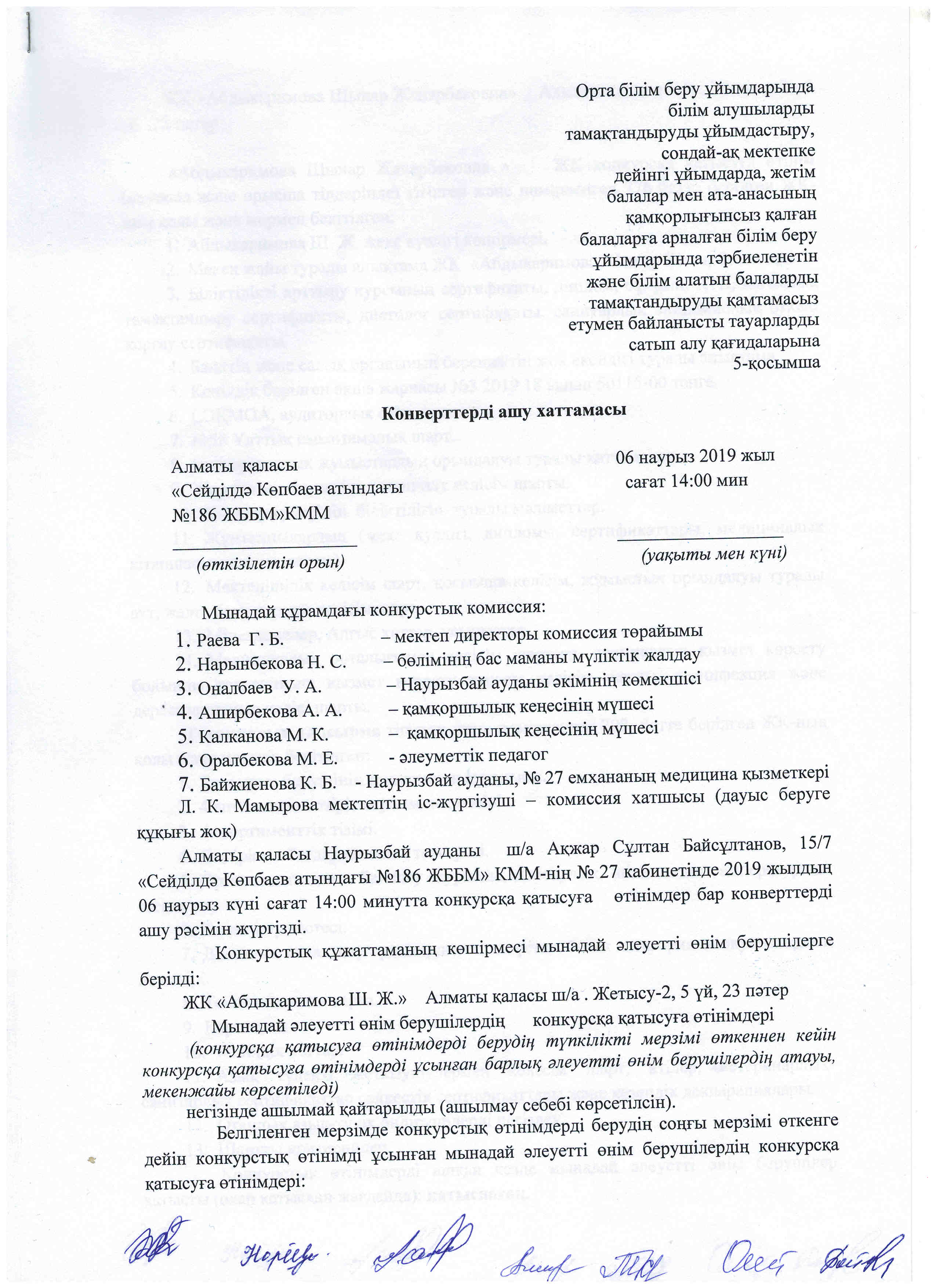 Протокол вскрытия конвертов-Конверттерді ашу хаттамасы