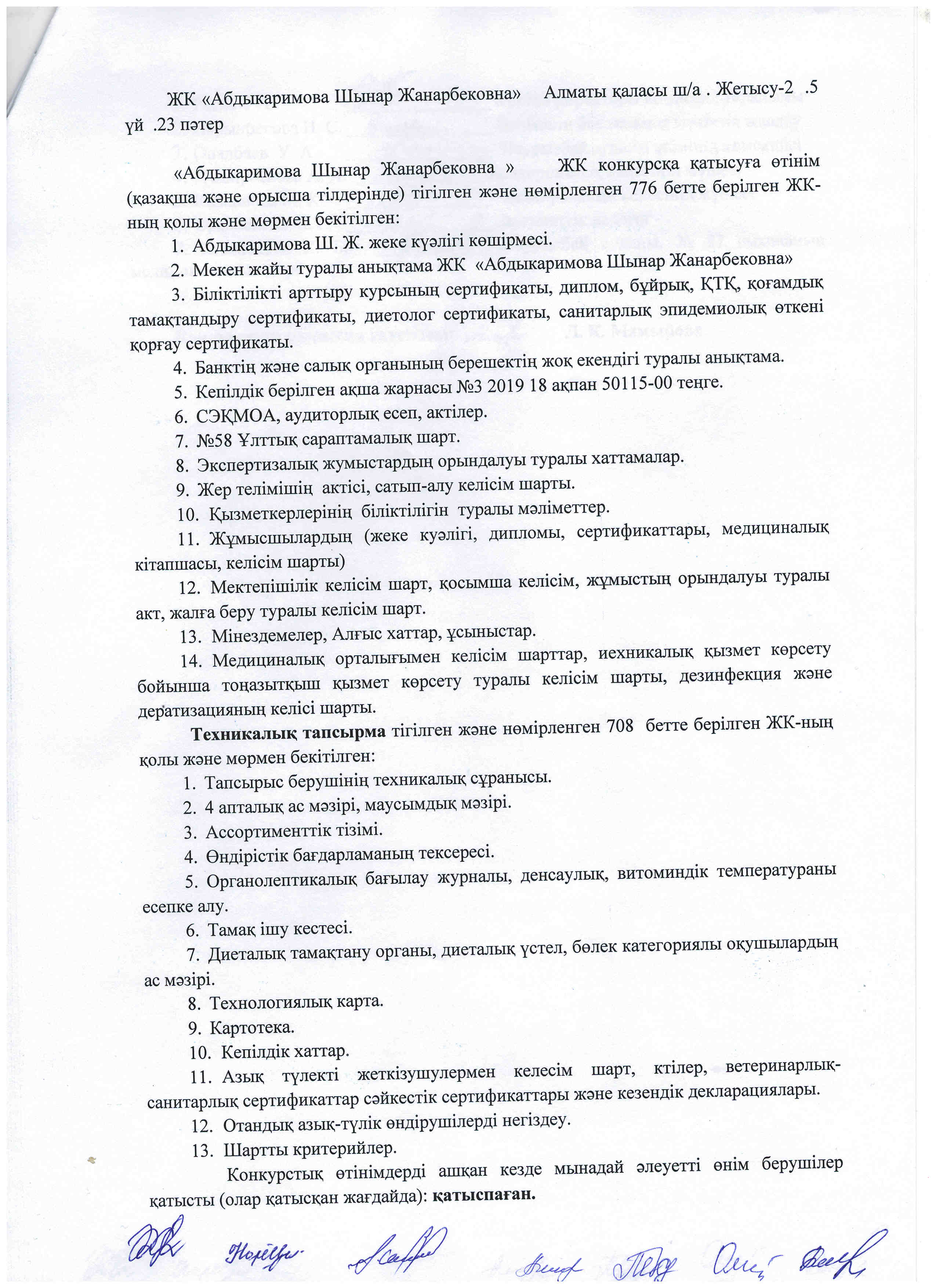 Протокол итогов конкурса - Байқау қорындысының хаттамасы