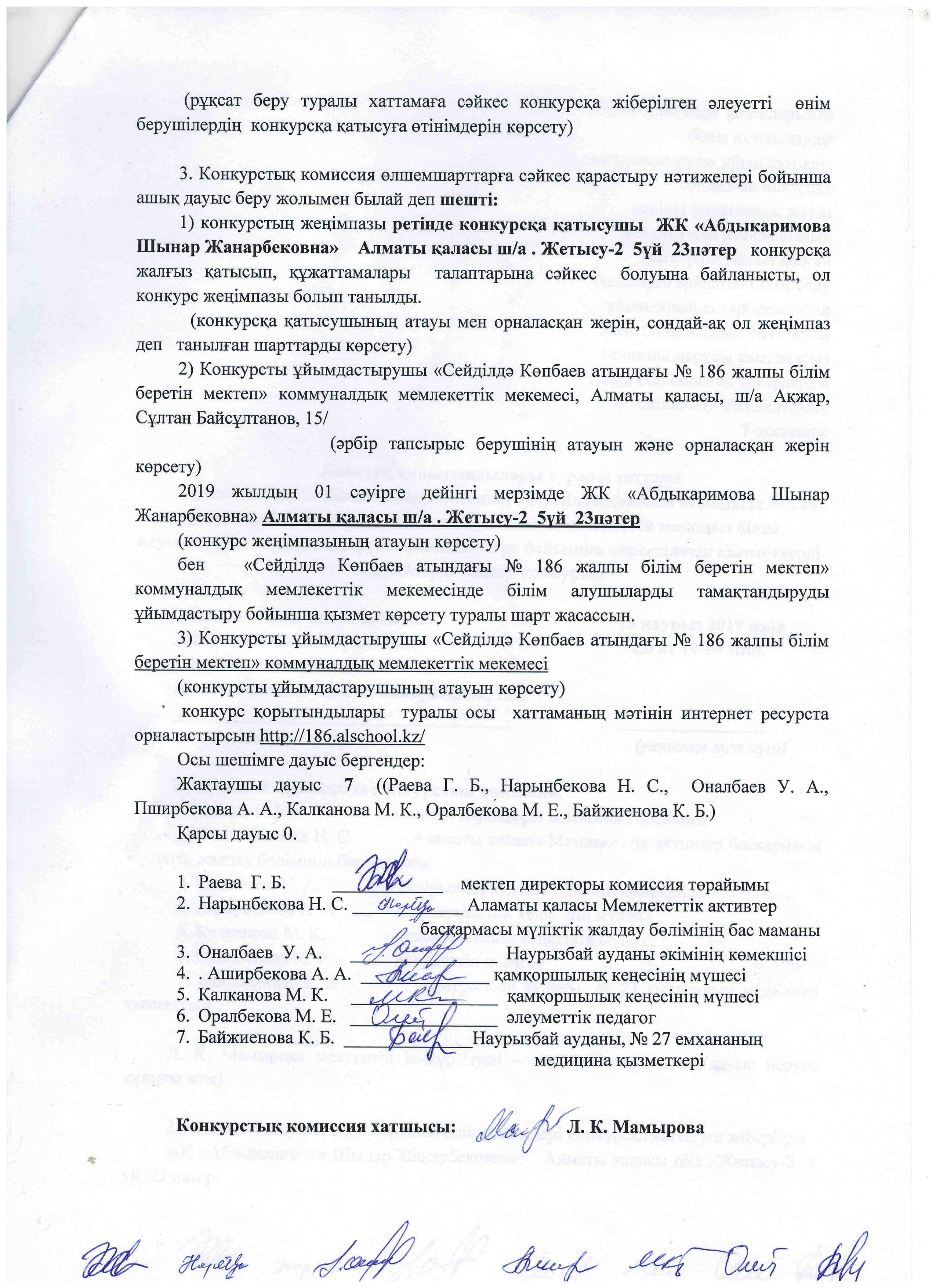 Протокол итогов конкурса - Байқау қорындысының хаттамасы