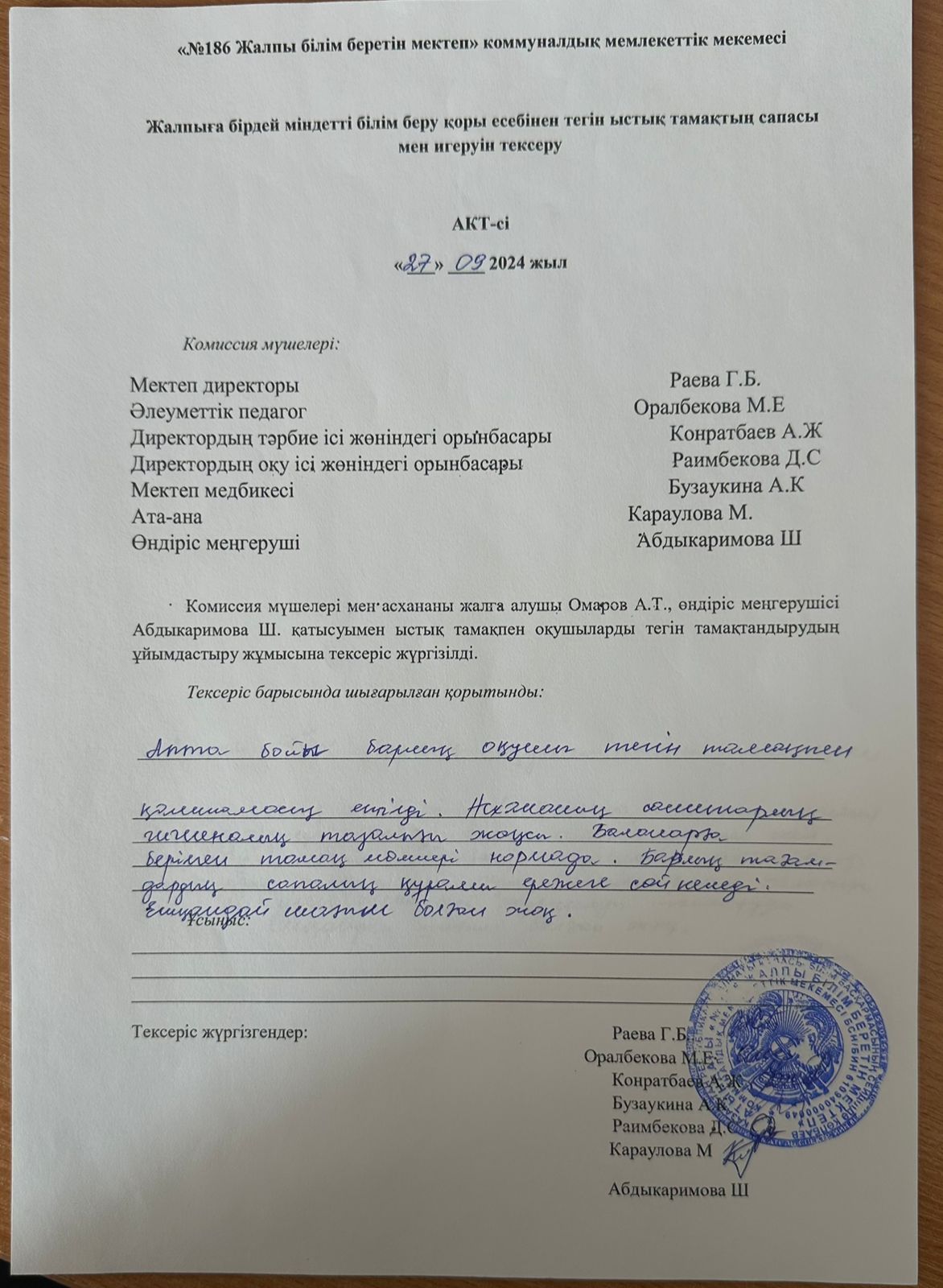 27 сентябрь 2024 0 1 2 3 4 5 Тамақтың сапасы мен игеруін тексеру АКТ-сі қыркүйек айы 2024 жыл Осы беттің QR-коды:QR-код этой страницы: