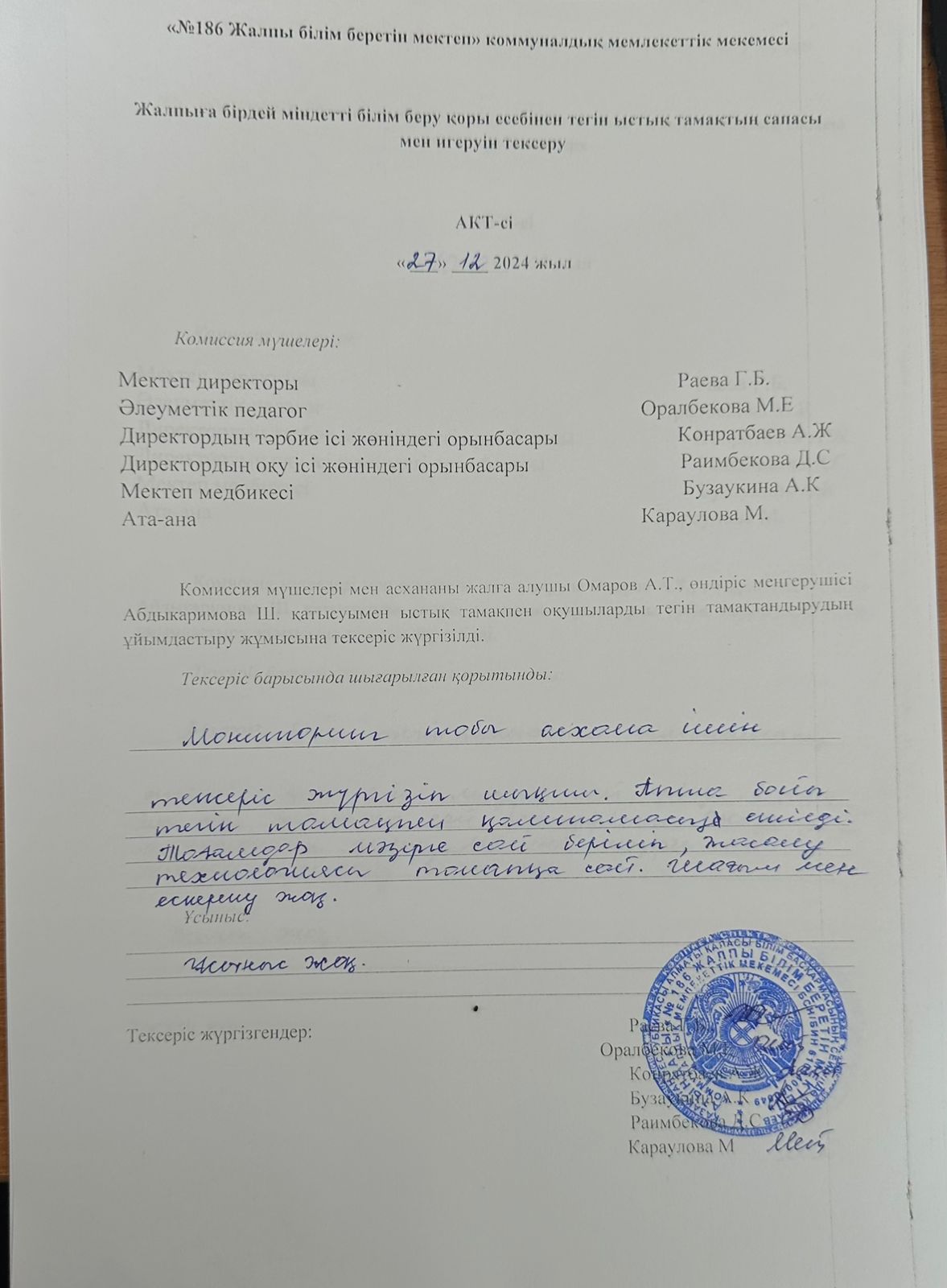 27 декабрь 2024 0 1 2 3 4 5 Тамақтың сапасы мен игеруін тексеру АКТ-сі желтоқсан айы 2024 жыл Осы беттің QR-коды:QR-код этой страницы: