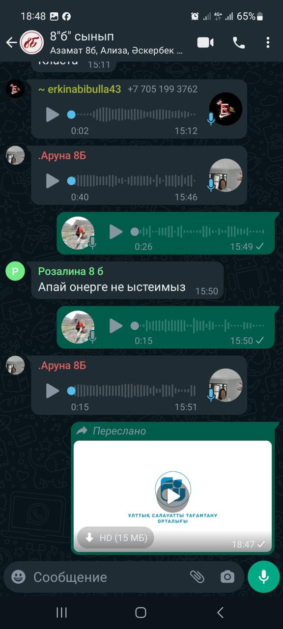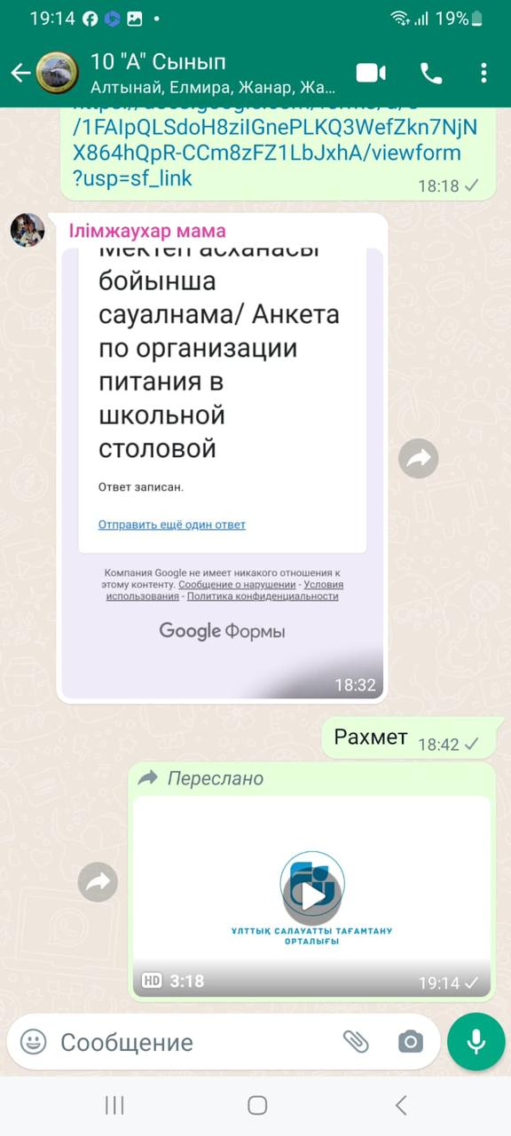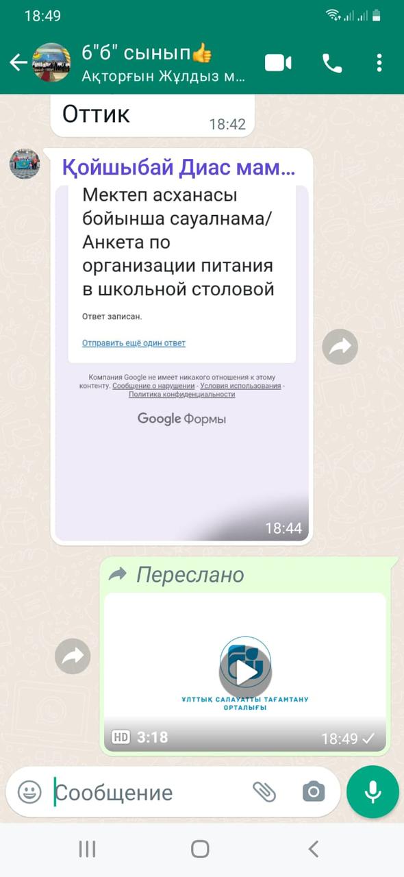 06 ноябрь 2023 0 1 2 3 4 5 Дұрыс тамақтануды насихаттау мақсатында оқушылар және ата-аналар чаттарына видеороликтер жіберілді. Оқушылар видеоны көріп өз ойларын білдірді. Осы беттің QR-коды:QR-код этой страницы: