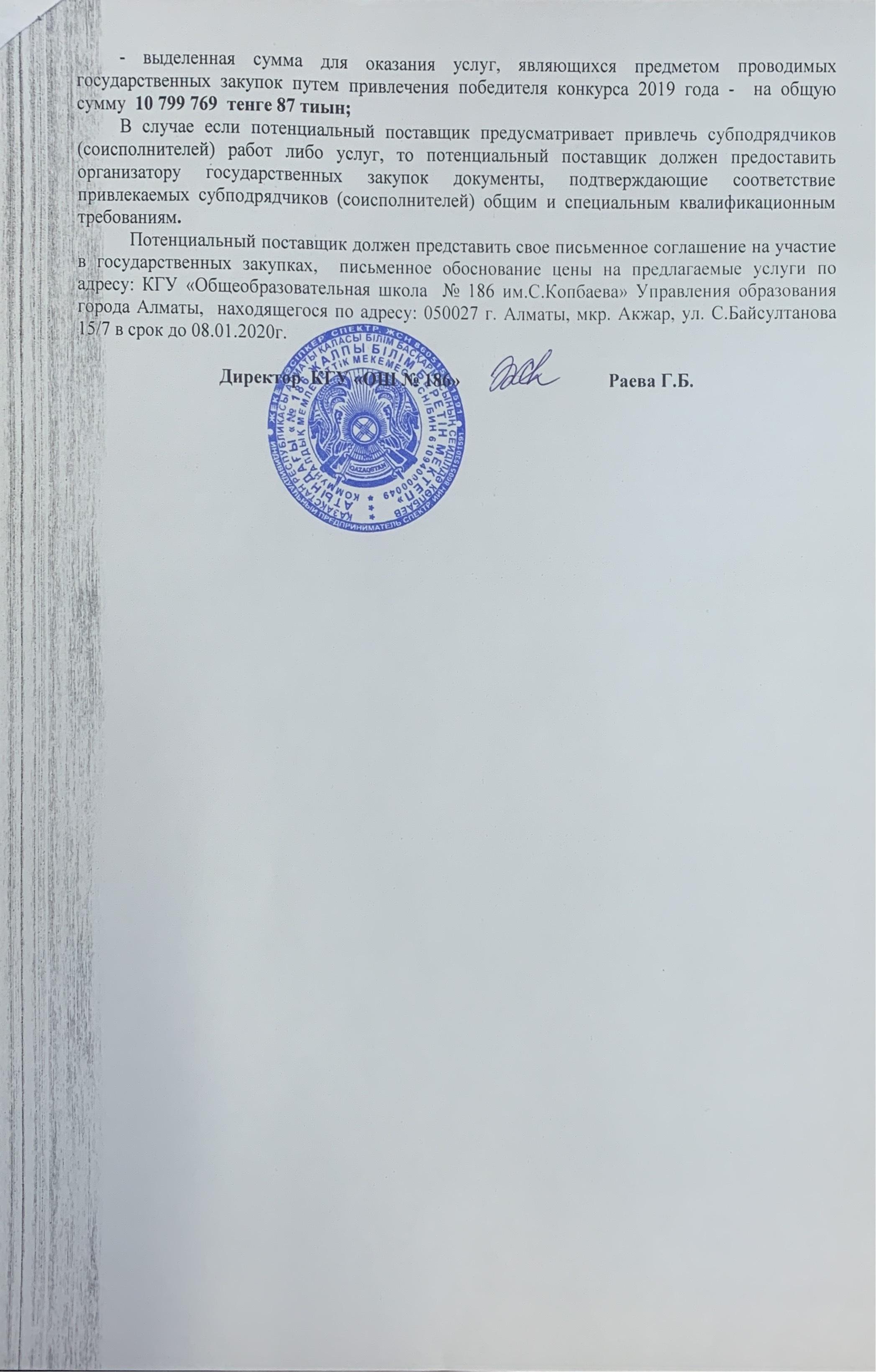 КГУ «Общеобразовательная школа №186 им.С.Копбаева»Управления образования г.Алматы