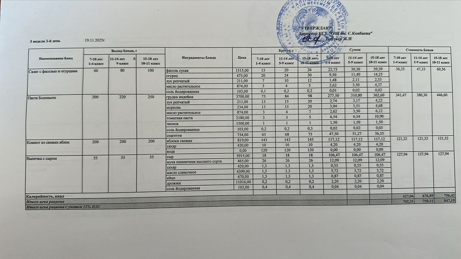 19 ноябрь 2025 0 1 2 3 4 5 19.11.2025 ж ас мәзірі 19.11.2025 год меню блюд Осы беттің QR-коды:QR-код этой страницы: